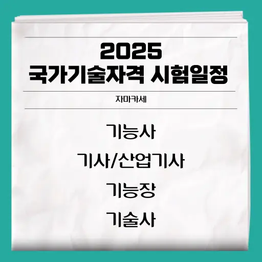 2025년 시행되는 국가기술자격시험 일정에 대해서 알려드리겠습니다. 시험 회차마다 응시가능한 자격증 종목, 필기, 실기, 일정, 합격자 발표까지 총정리해 드리겠습니다.