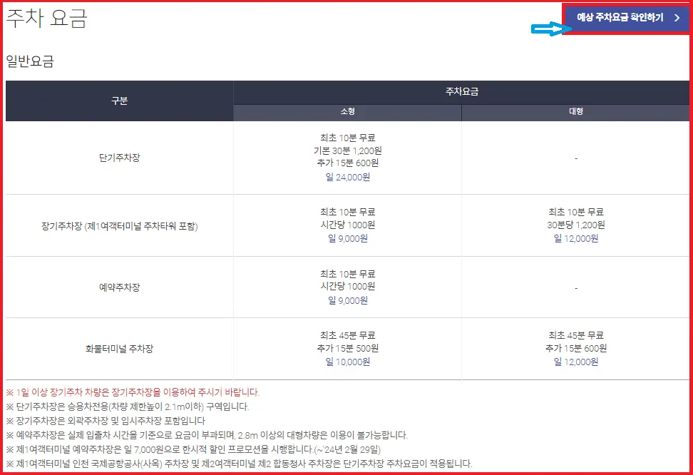 • 장기주차장과 주차요금은 동일합니다.