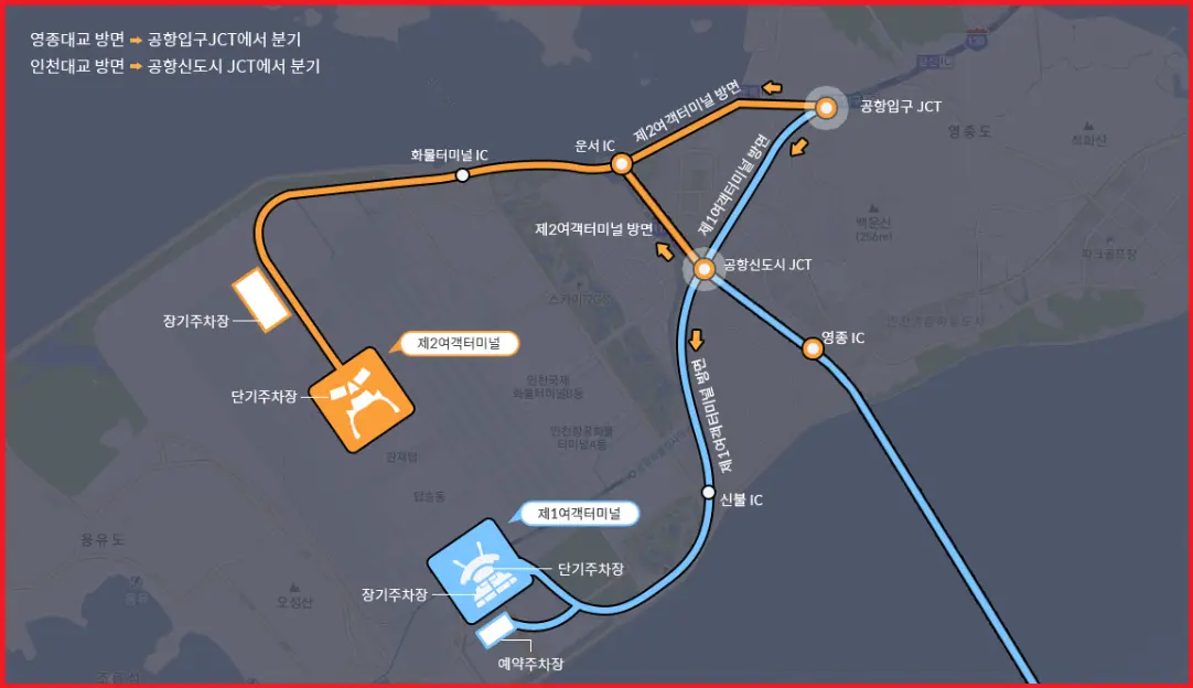 • 인천국제공항을 자차를 통해 이동할 경우 통행료가 발생합니다. 통행료는 아래와 같습니다.