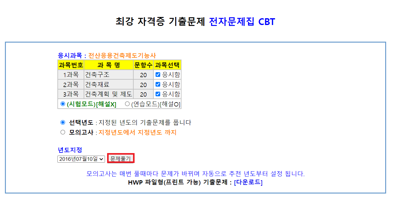 5. 년도를 지정하여 문제 풀기를 클릭한 후 풀면 됩니다.